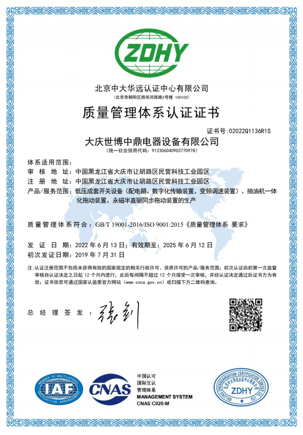 質(zhì)量管理體系認證證書