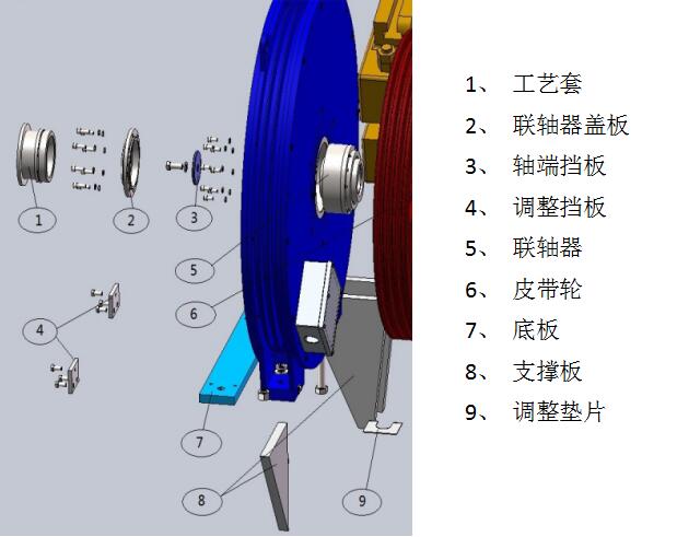 10、將調(diào)整擋板安裝到電機(jī)支撐底板上,調(diào)整電機(jī)軸向位置。
